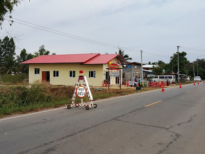 | The local police let Pastor Santi borrow the Police Checkpoint sign and traffic cones for the Christmas outreach event. |